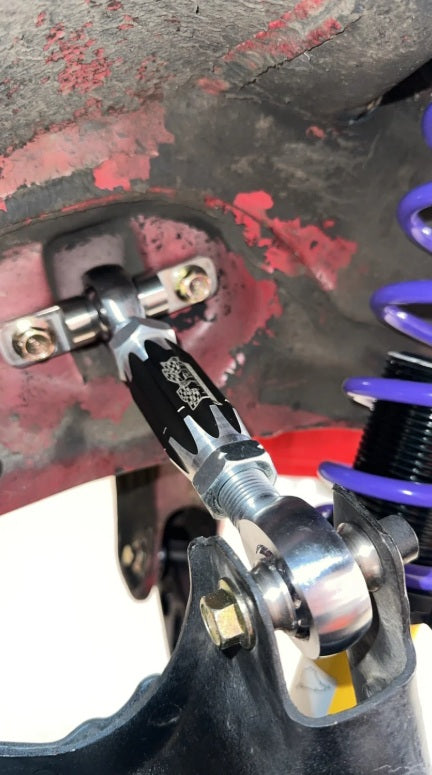 Rear upper suspension link allows for more camber adjustment than any other of its kind on the market, perfect for those lowered track cars where the competitions 2.5 degrees of adjustment just isn’t enough!